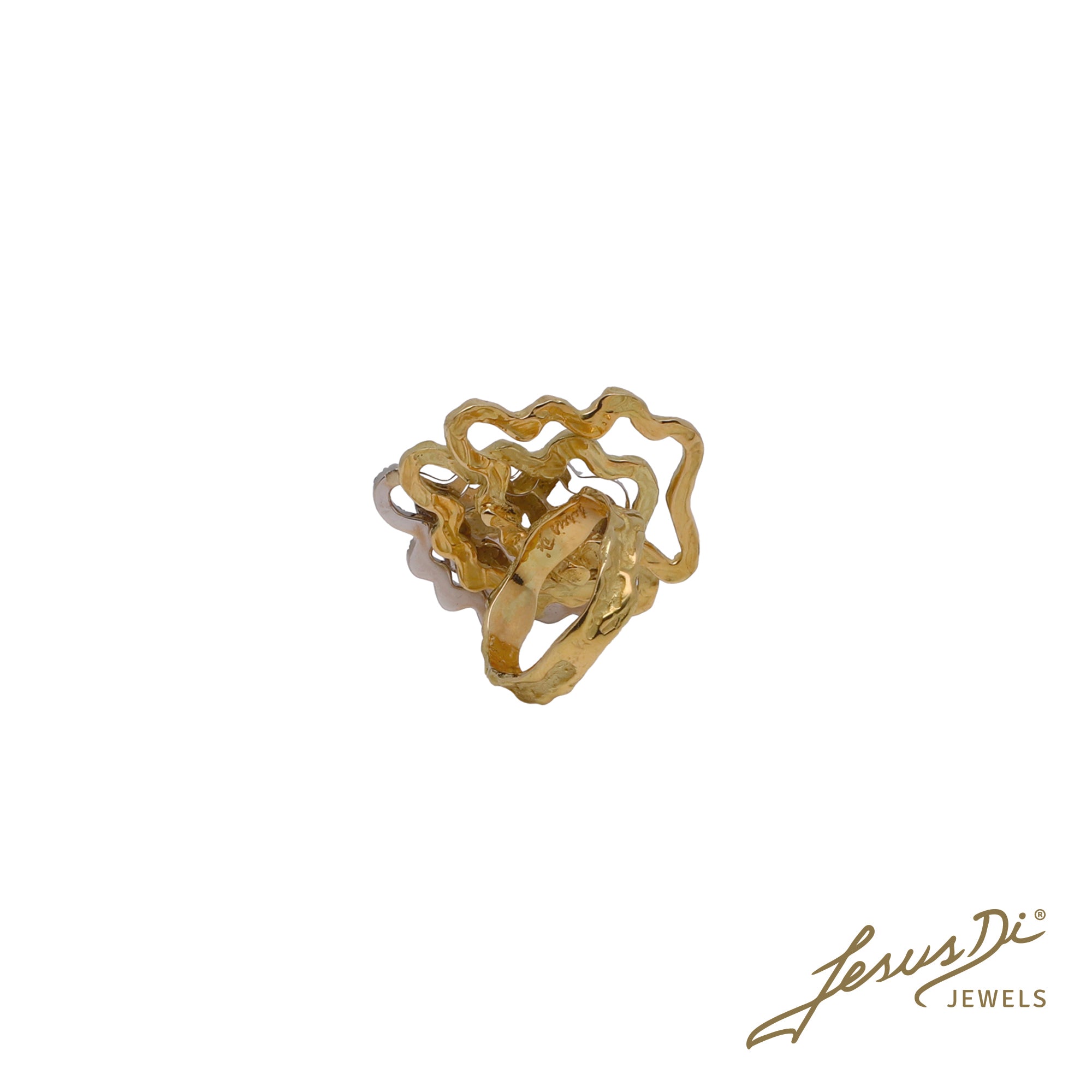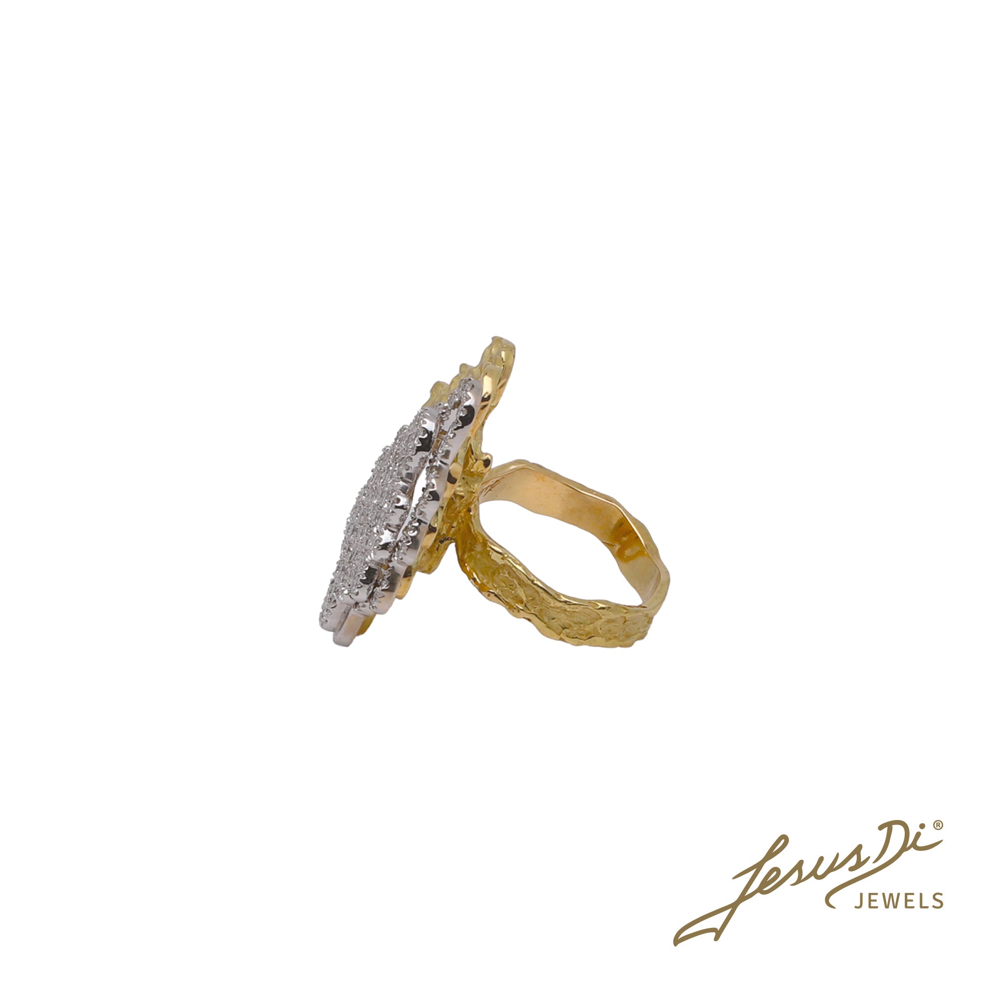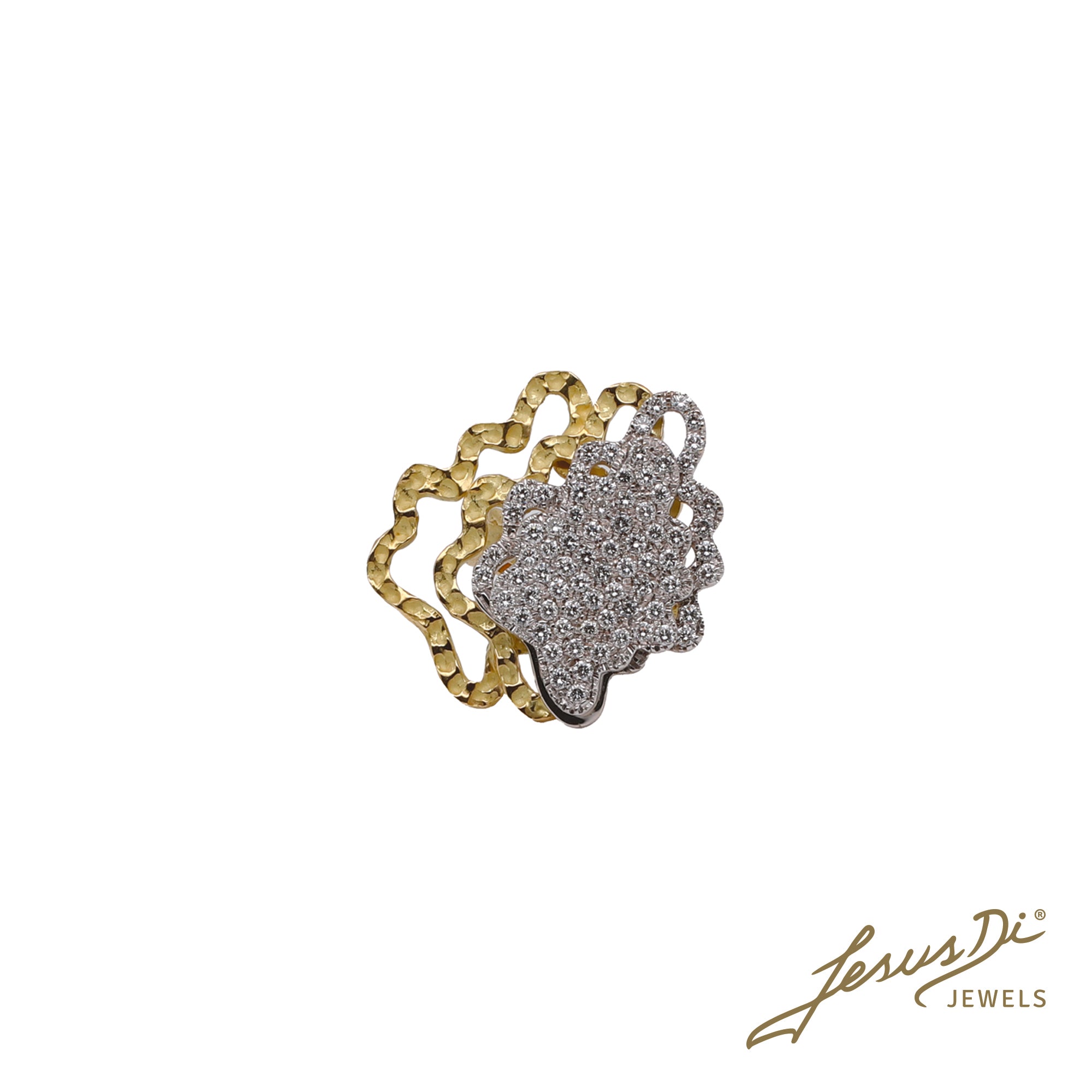 Ogni gioiello della linea Alta Gioielleria Jesus Di Jewels è realizzato interamente a mano in oro bianco ed oro giallo 18 kt attraverso l'antica tecnica della lavorazione etrusca, grazie alla quale ogni gioiello creato diviene un pezzo unico in cui il lusso dei materiali incontra il fascino senza tempo dell'artigianato.