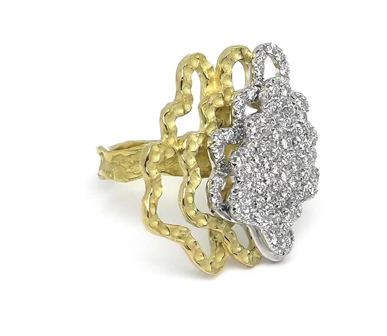 L’anello è realizzato interamente a mano in oro giallo e oro bianco 18 kt.