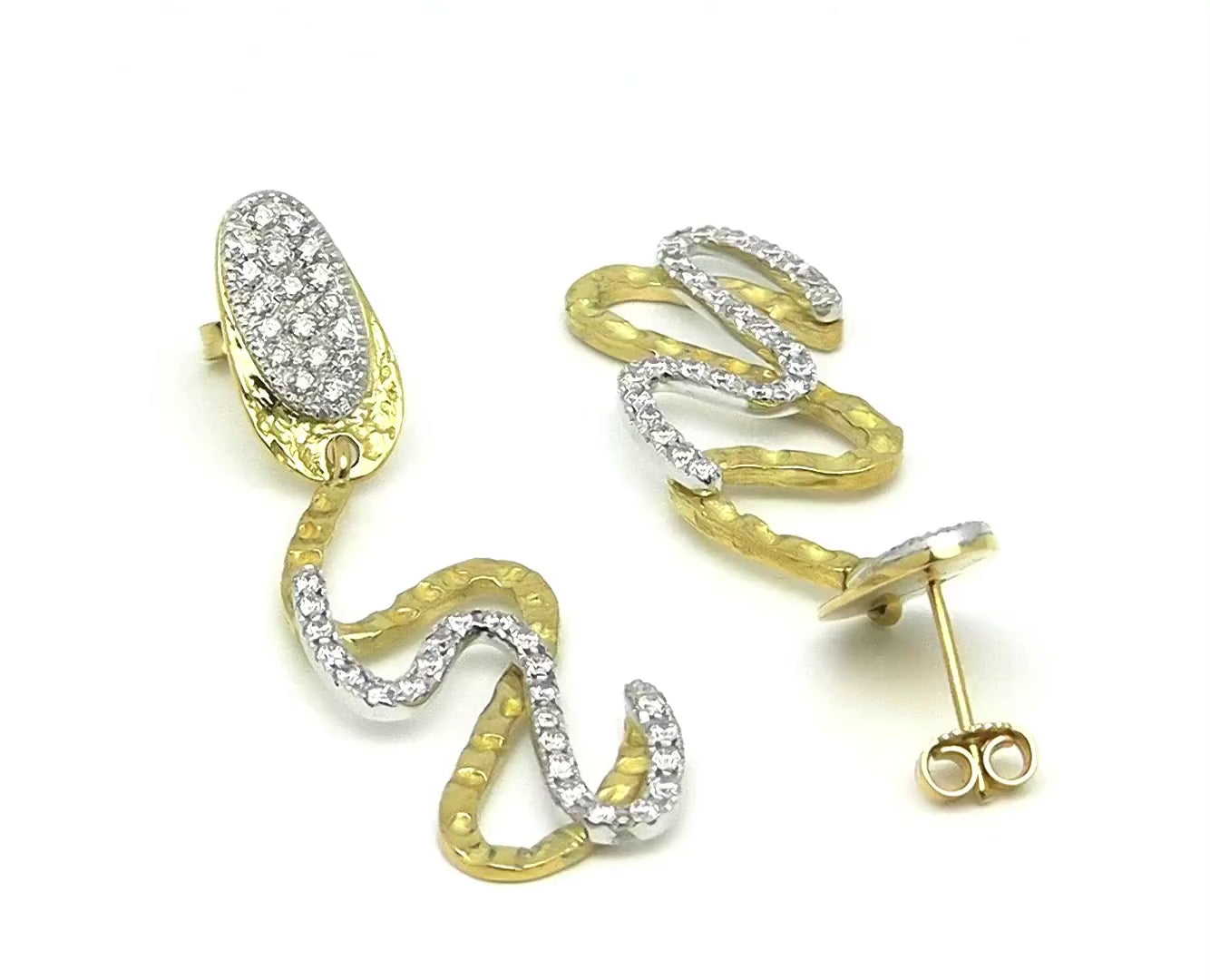 Gli orecchini sono realizzati interamente a mano in oro giallo e oro bianco 18 kt.
