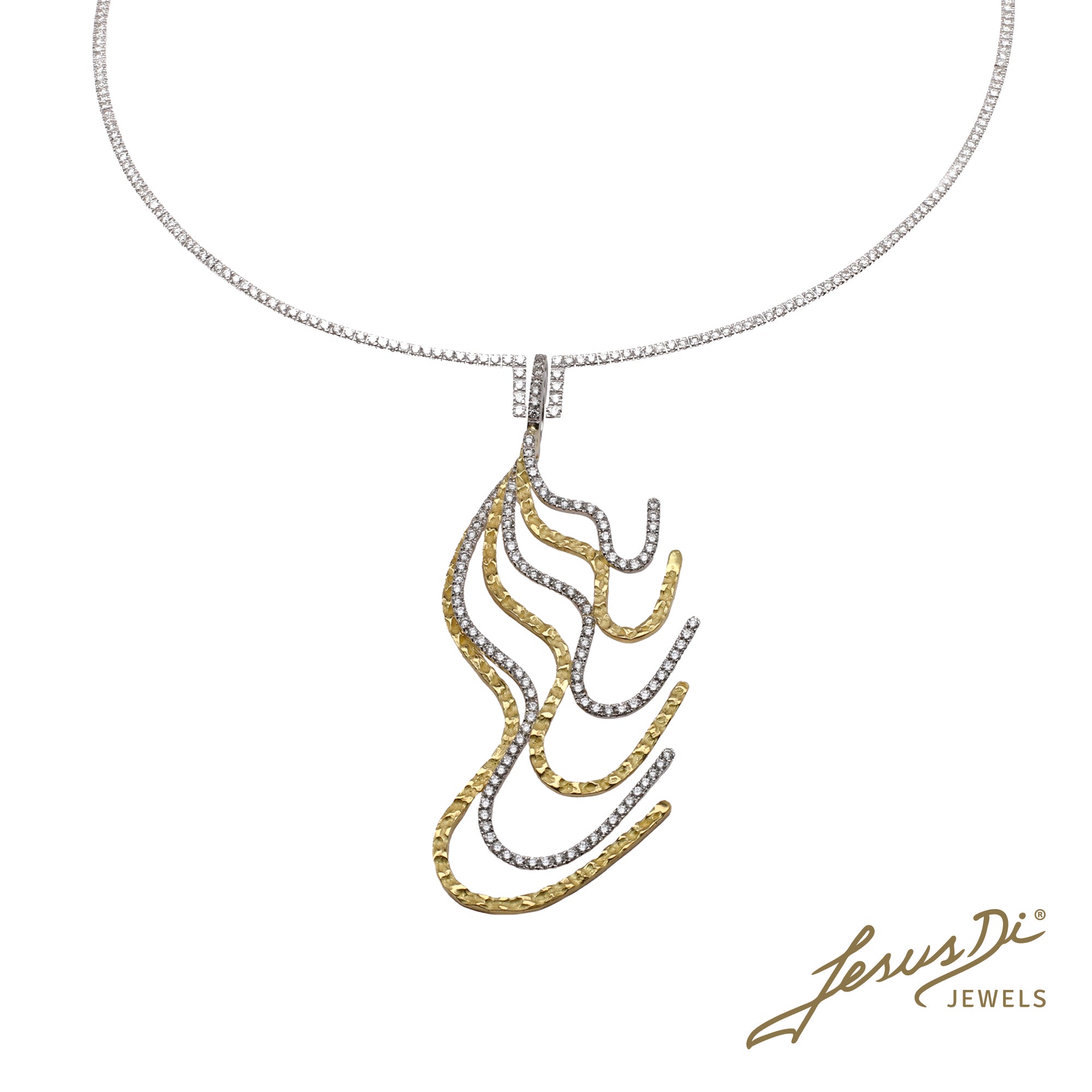 Ogni gioiello della linea Alta Gioielleria Jesus Di Jewels è realizzato interamente a mano in oro bianco ed oro giallo 18 kt attraverso l'antica tecnica della lavorazione etrusca, grazie alla quale ogni gioiello creato diviene un pezzo unico in cui il lusso dei materiali incontra il fascino senza tempo dell'artigianato.