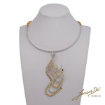 La collana è realizzata interamente a mano in oro giallo e oro bianco 18 kt.