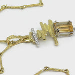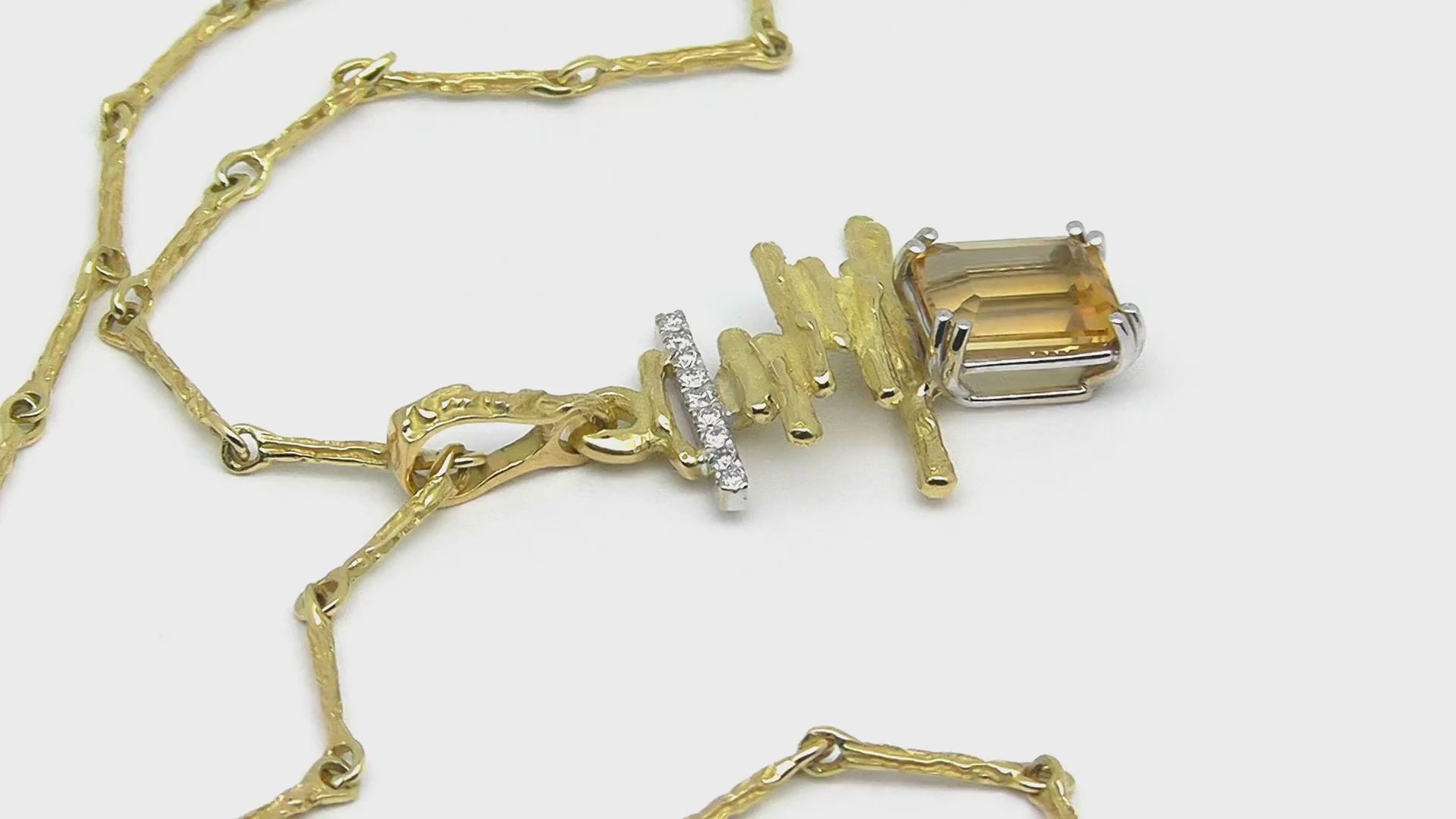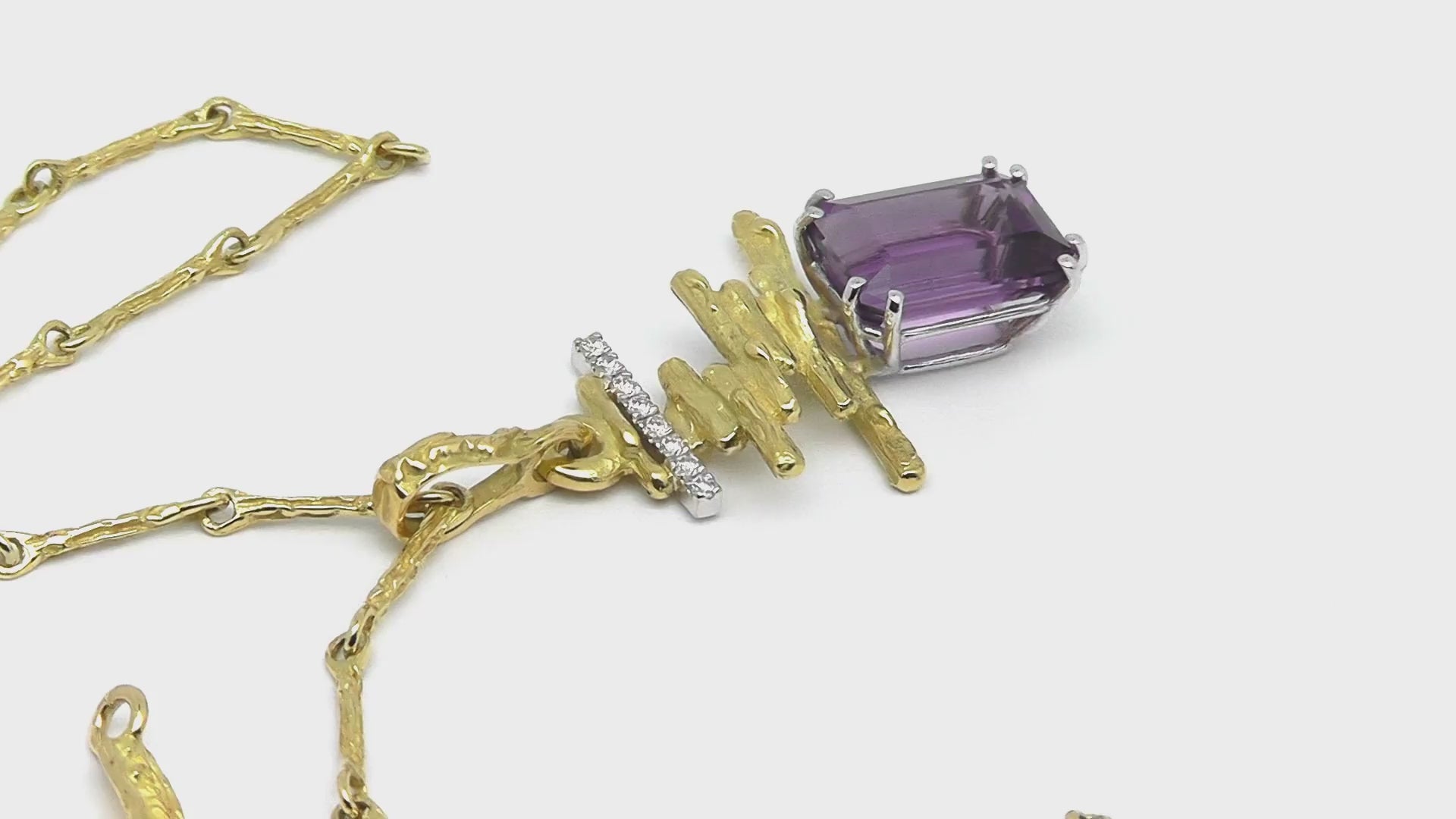 The necklace is entirely handcrafted in 18 kt yellow and white gold.